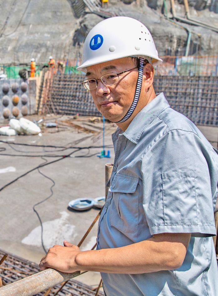 汪志林在白鶴灘水電站建設現場。  攝影:劉濤