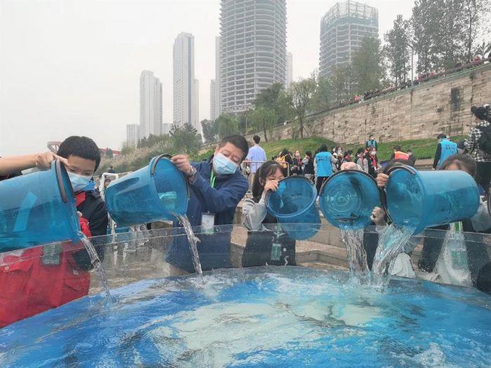 ▲ 向家壩庫區 “三峽娃娃”參加長江上游珍稀特有魚類增殖放流活動