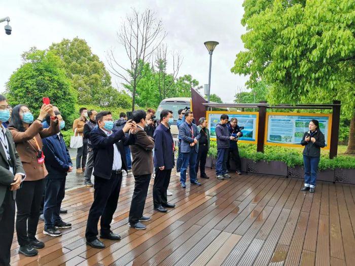 ▲代表們考察珍稀植物保護情況。