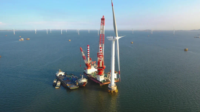 ▲2020年7月12日,國內首臺10兆瓦海上風電機組在三峽集團福建福清興化灣二期海上風電場成功并網發電。