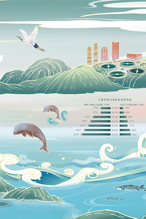 • 圓內標識——山、水、壩的組合,寓意三峽集團深入貫徹落實“綠水青山就是金山銀山”“人與自然和諧共生”的理念,努力以“兩翼齊飛”擦亮中國式現代化的生態底色,為建設美麗中國賦能添彩。