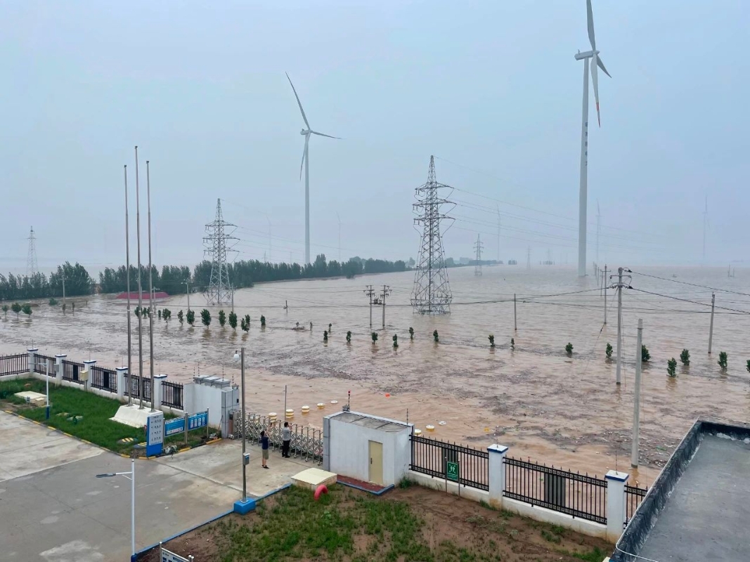 ▲ 2021年7月22日,鵬越風(fēng)電場(chǎng)升壓站被洪水圍困